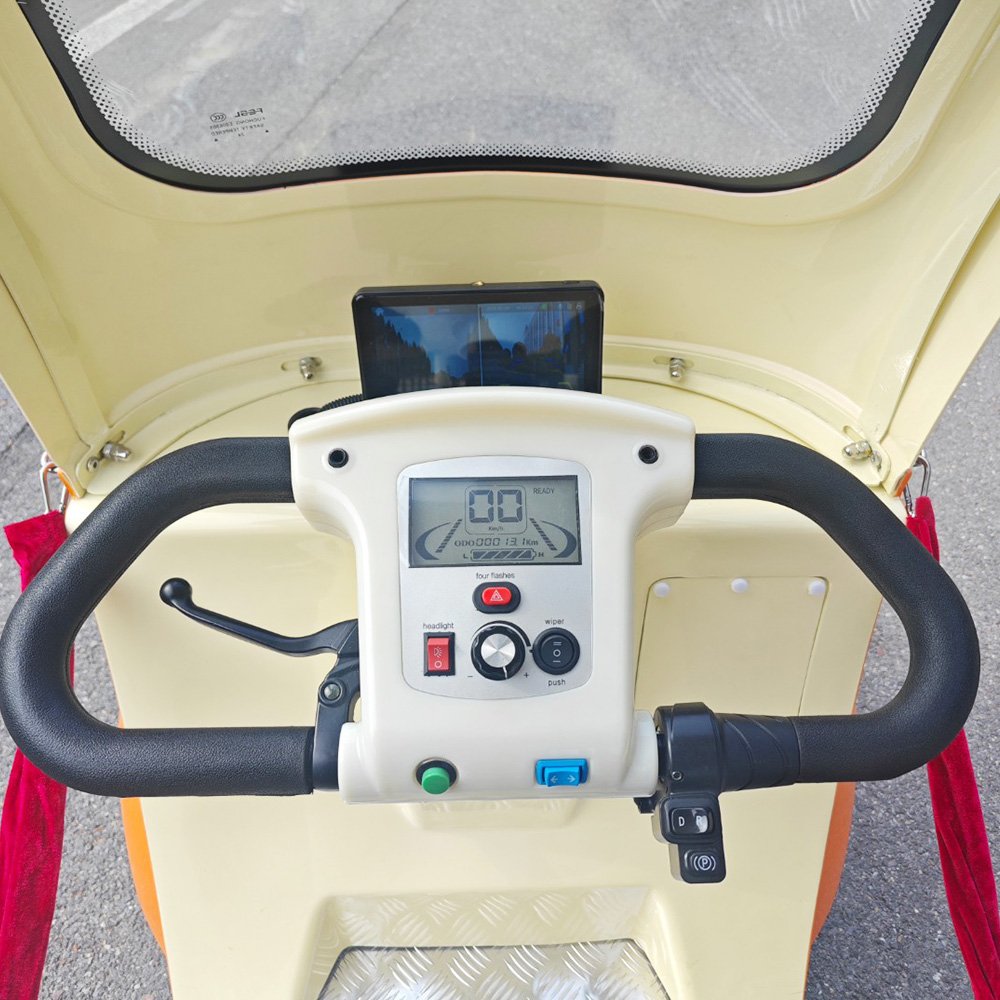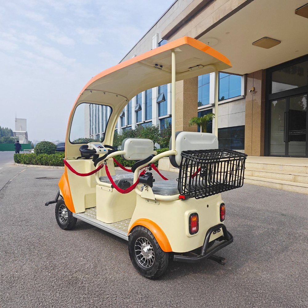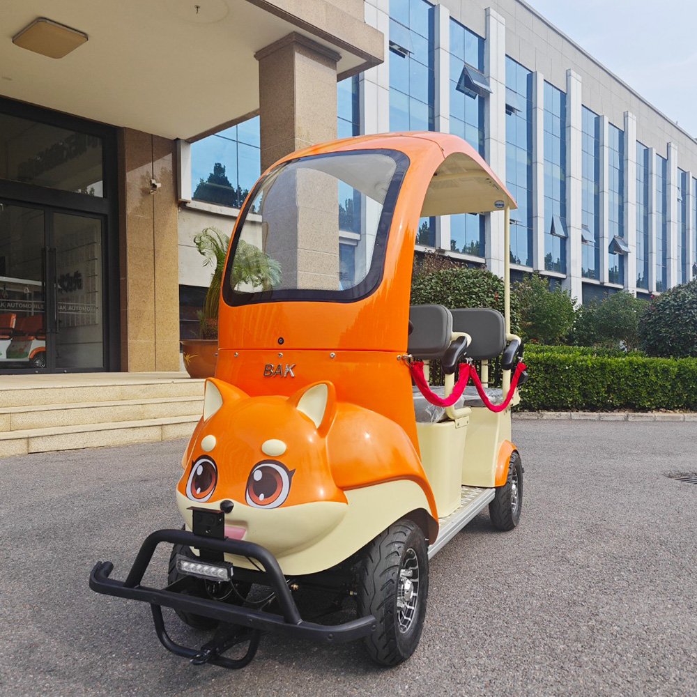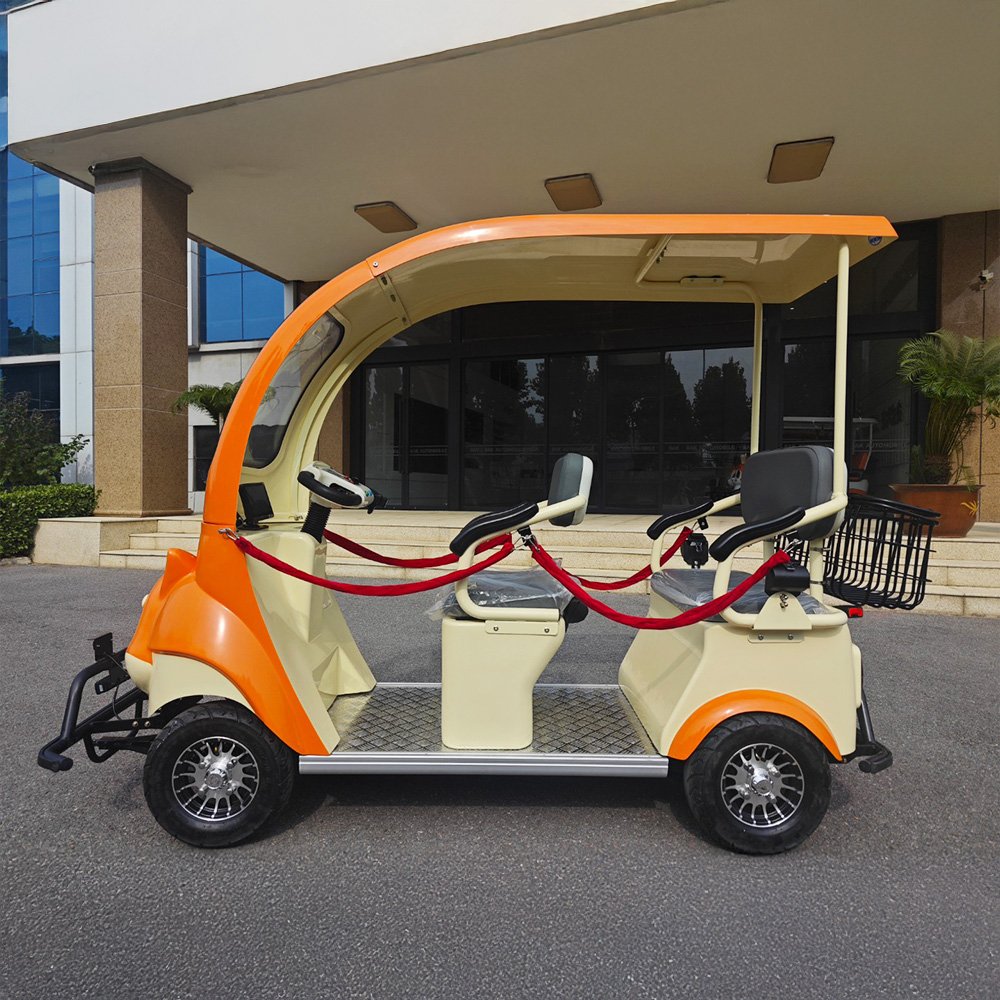 This is a fully electric, self-driving sightseeing vehicle; passengers can drive it as soon as they board. It’s ideal for short trips in scenic areas and parks, offering a quiet and comfortable ride while maintaining an elegant appearance and practical functionality. The entire vehicle is electric, with reliable and adjustable speed. Three roof designs are available for this model.