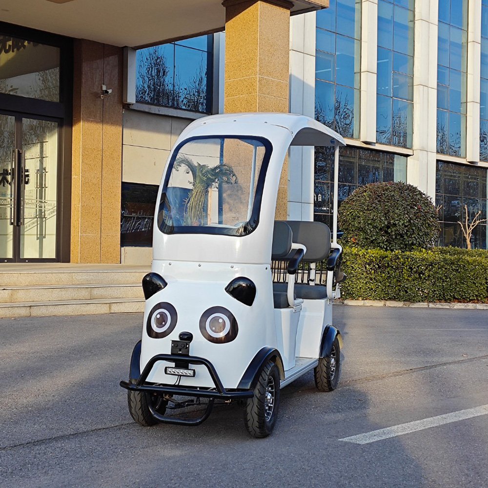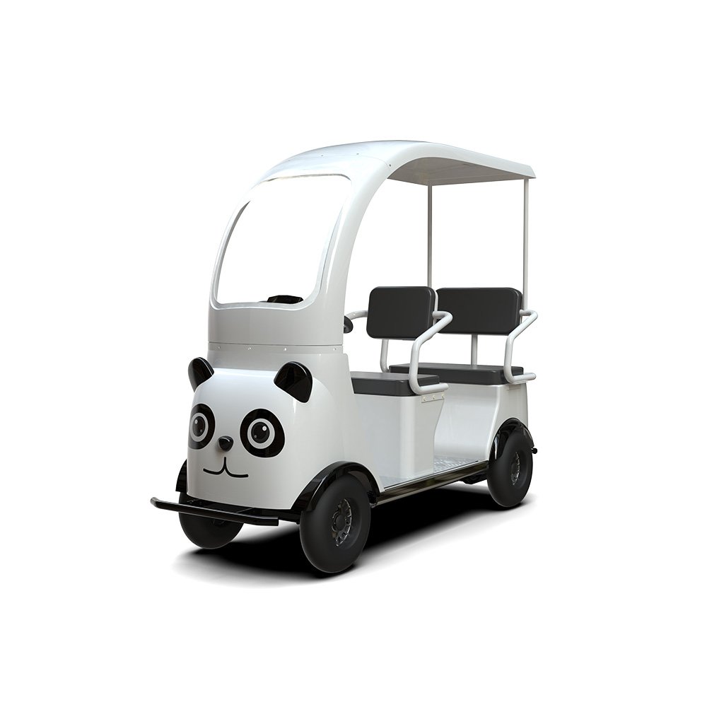 The  3-Seater Panda is a relatively narrow sightseeing vehicle with a lively and fun design and adorable cartoon style, creating a bright and attractive sight in the scenic area.
