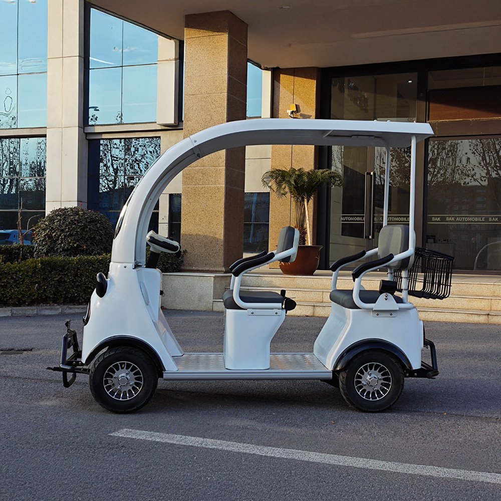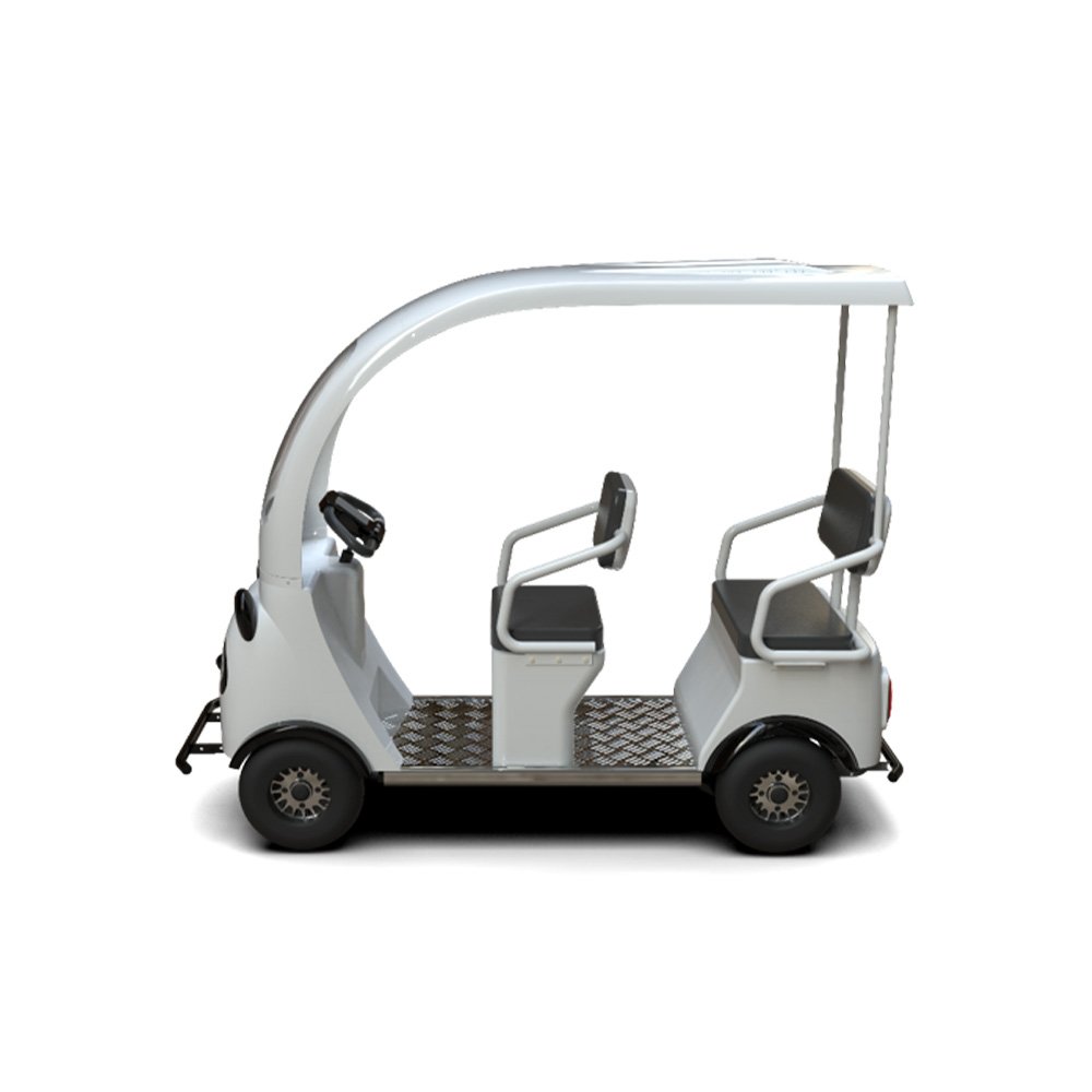 This is a fully electric, self-driving sightseeing vehicle; passengers can drive it as soon as they board. It’s ideal for short trips in scenic areas and parks, offering a quiet and comfortable ride while maintaining an elegant appearance and practical functionality. The entire vehicle is electric, with reliable and adjustable speed. Three roof designs are available for this model.