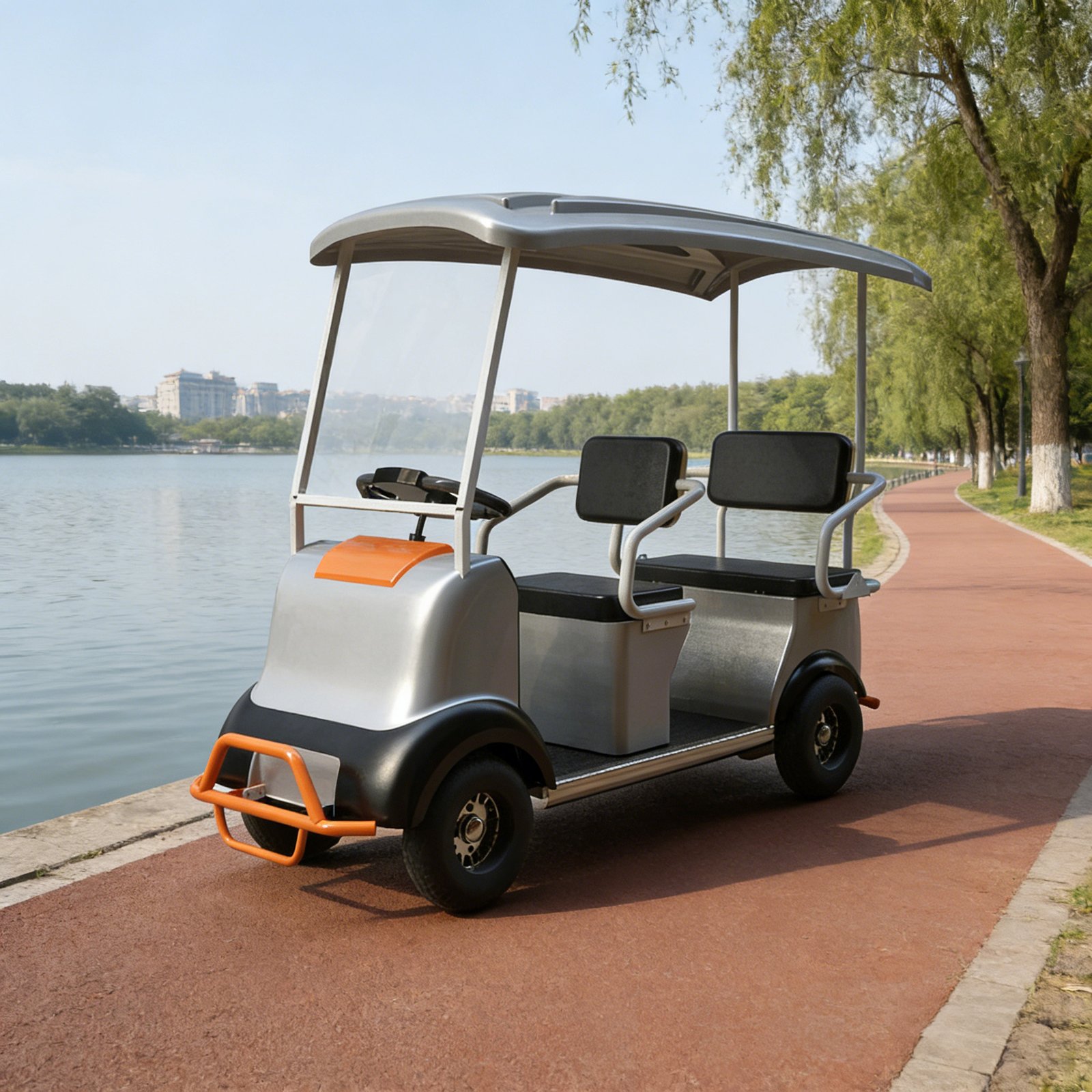 Four-seater open-top sightseeing cart, simple and stylish design suitable for all scenarios.The body is made of lightweight alloy, combining durability and aesthetics.