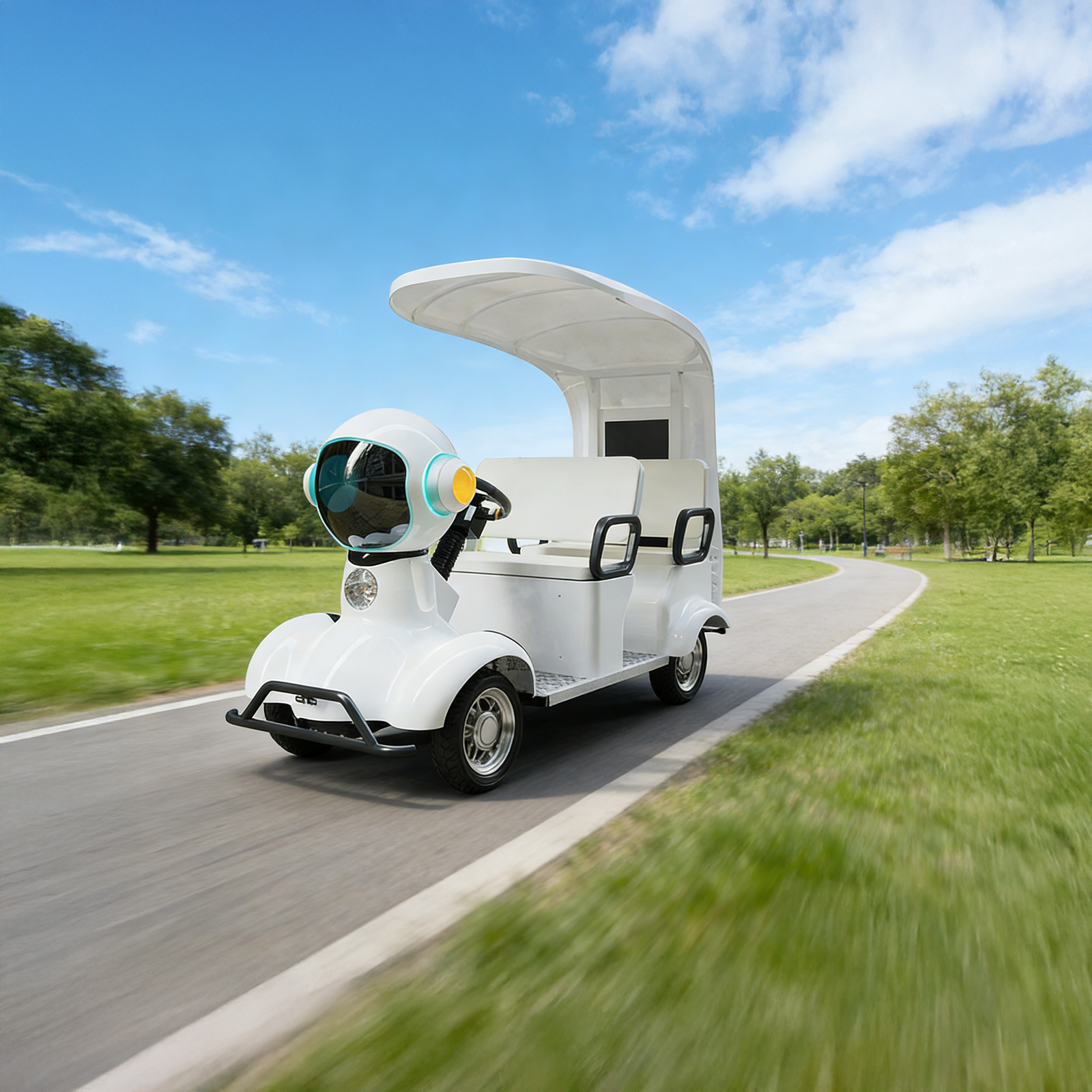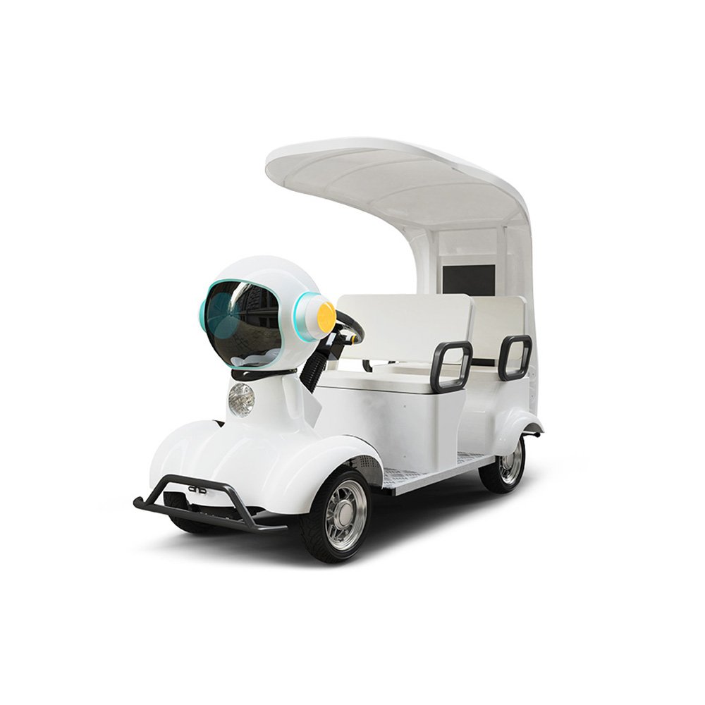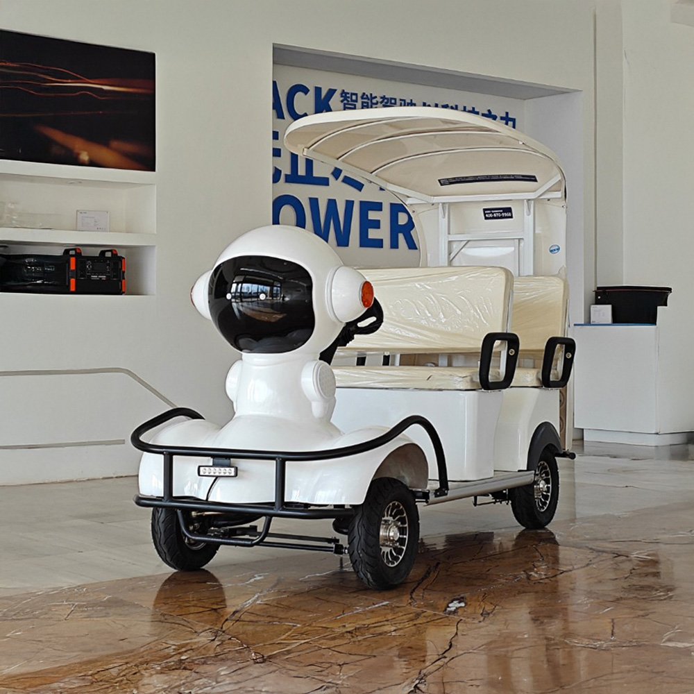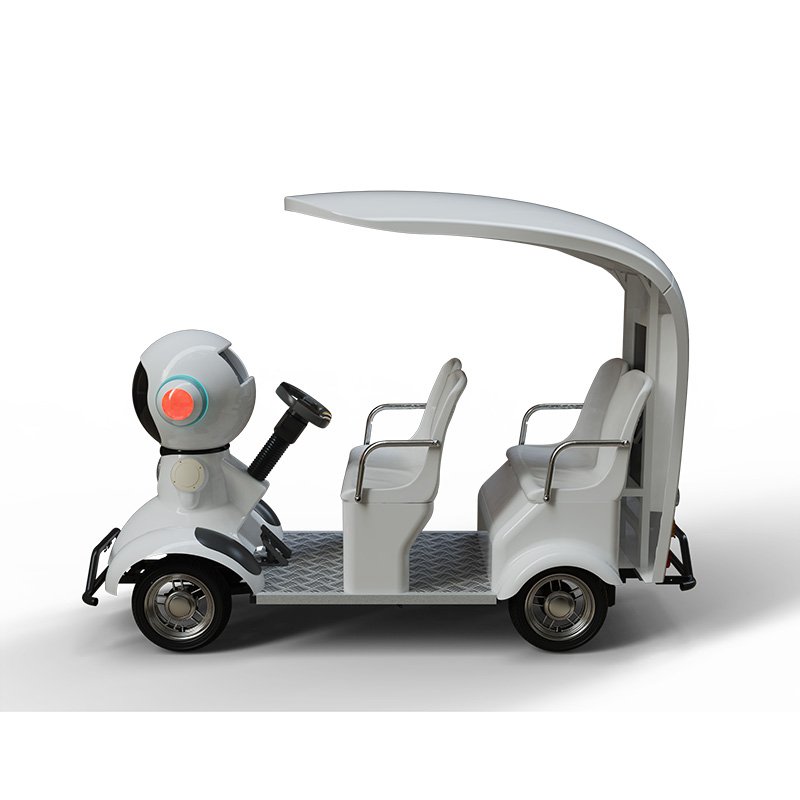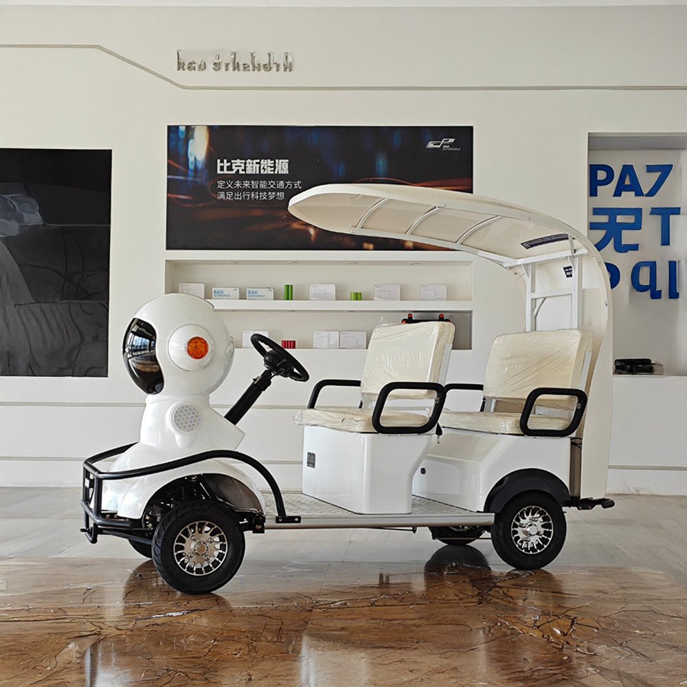 This four-seat robotic sightseeing vehicle, with its lively and fun design and adorable cartoon style, is particularly eye-catching within the scenic area.