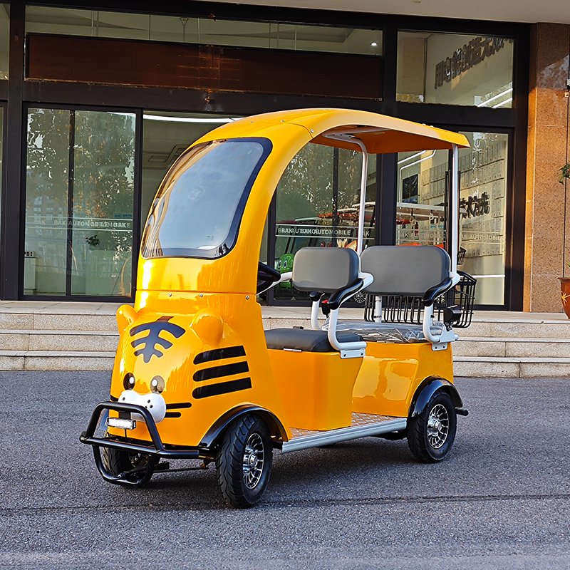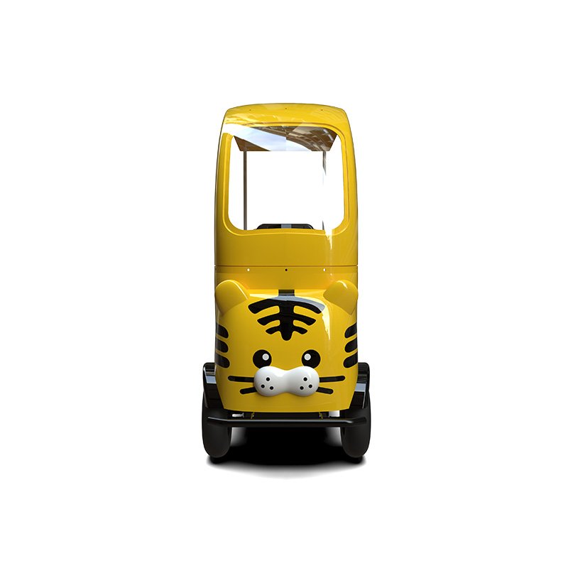 The Three-Seat Tiger Cart is a relatively narrow sightseeing vehicle with a lively and fun design and adorable cartoon style, creating a bright and attractive sight in the scenic area.