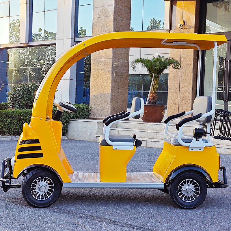 This is a fully electric, self-driving sightseeing vehicle; passengers can drive it as soon as they board. It’s ideal for short trips in scenic areas and parks, offering a quiet and comfortable ride while maintaining an elegant appearance and practical functionality. The entire vehicle is electric, with reliable and adjustable speed. Three roof designs are available for this model.