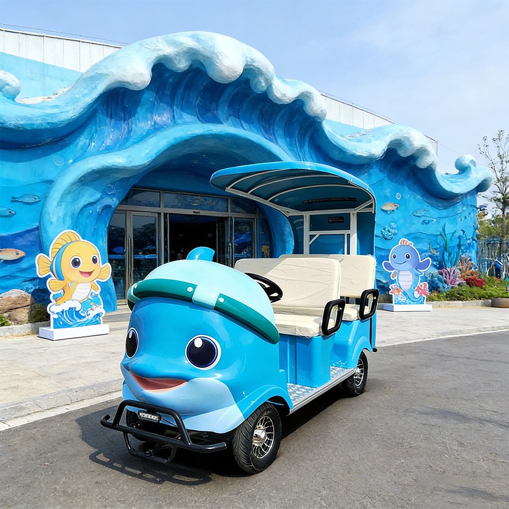 The “Four Little Dolphins” sightseeing vehicle, with its lively and fun design, is especially suitable for aquariums and other scenic spots. Its adorable cartoon style makes it particularly eye-catching within these areas.
